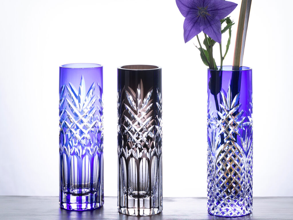 生花を活けとき双方が引き立て合い映えるように、カットで輝く光の反射と色バランスを意識したデザインに工夫しています。
