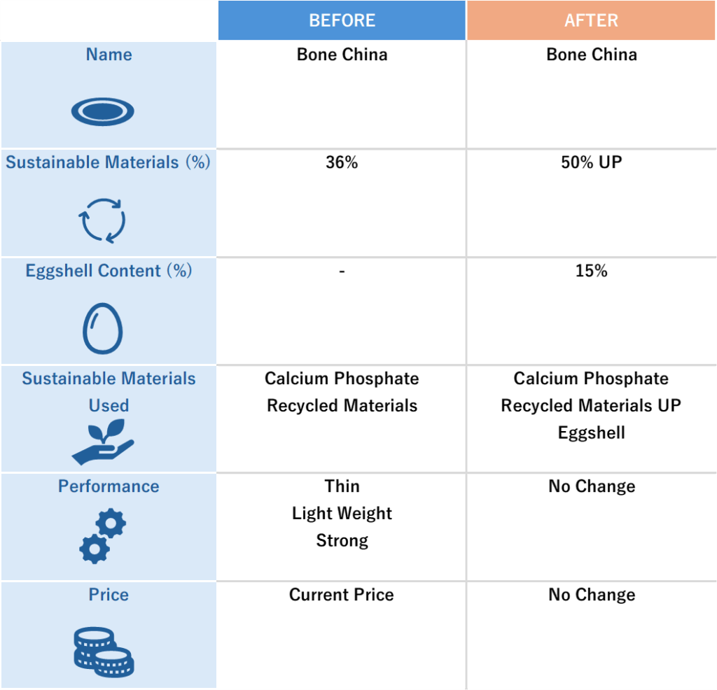 This shift reduces our reliance on conventional resources and supports a new line of business: producing and supplying eggshell-derived calcium powder for use in tableware and beyond.